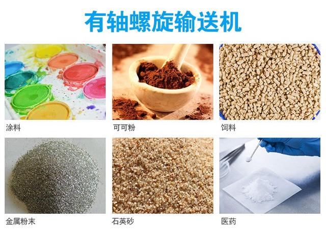 有轴叶片适用输送的物料:粉料、小颗粒物料(如:面粉、大豆、混凝土等),如果输送黏性物料如污泥就会粘在内管轴和叶片上,输送块状的物料容易卡死。