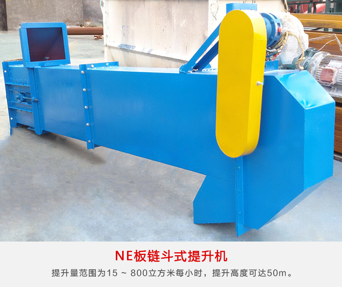 NE板链斗式提升机为板链式、重力诱导卸料的提升设备,该系列提升机具有NE15 ~ NE800多种规格。提升量范围为15 ~ 800m³ /h,提升高度可达50m。