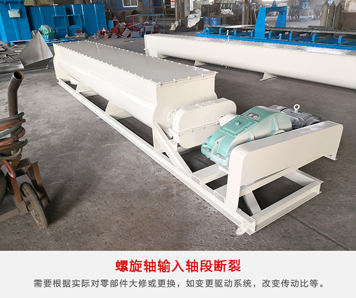 由于螺旋给料机安装时,螺旋轴同轴度超差或选轴时安全系数偏低等引起,根据生产需要进行设备改造维护,当工艺变化,超出设备性能范围时,继续运行会造成设备快速损坏,甚至满足不了生产工艺要求,影响正常生产。需要根据实际情况和现场条件,对零部件大修更换,如变更驱动系统,改变传动比,提高备件材料性能或尺寸变化,直至更换设备。