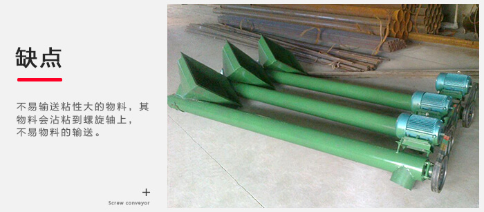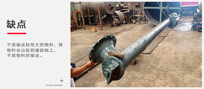 缺点:不易输送粘性大的物料,其物料会沾粘到螺旋轴上,不易物料的输送。