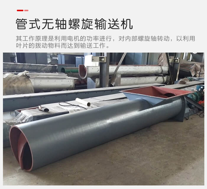 管式有轴香蕉视频下载地址链接其,工作原理是利用电机的功率进行,对内部螺旋轴转动,以利用叶片的拨动物料而达到输送工作。