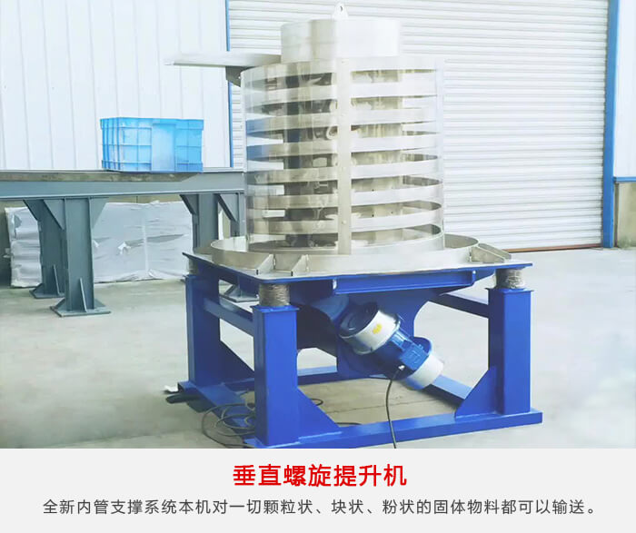 垂直振动螺旋提升机又叫振动螺旋提升机、垂直螺旋提升机、振动垂直提升机等。振动垂直螺旋提升机是一种新型的垂直振动输送设备,该设备具有蜂窝式底座,全新内管支撑系统本机对一切颗粒状、块状、粉状的固体物料都可以输送。