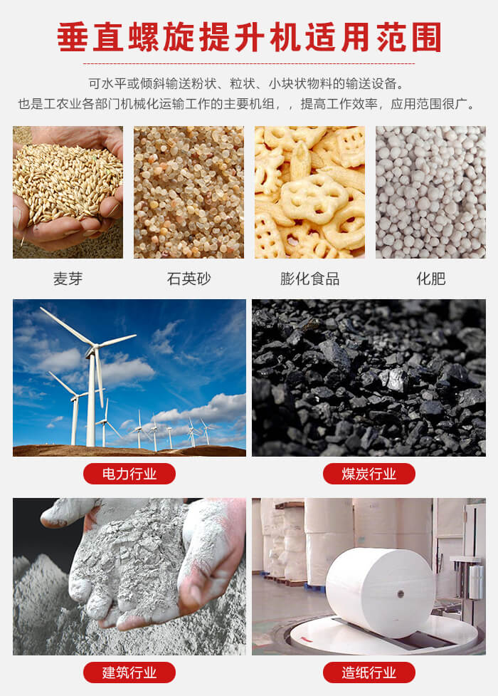 螺旋垂直提升机是用来水平或倾斜输送粉状、粒状、小块状物料的一般用途的输送设备, 螺旋输送给料机是工农业各部门机械化运输工作的主要机组,可使运输工作减轻劳动强度,提高工作效率,应用范围很广。