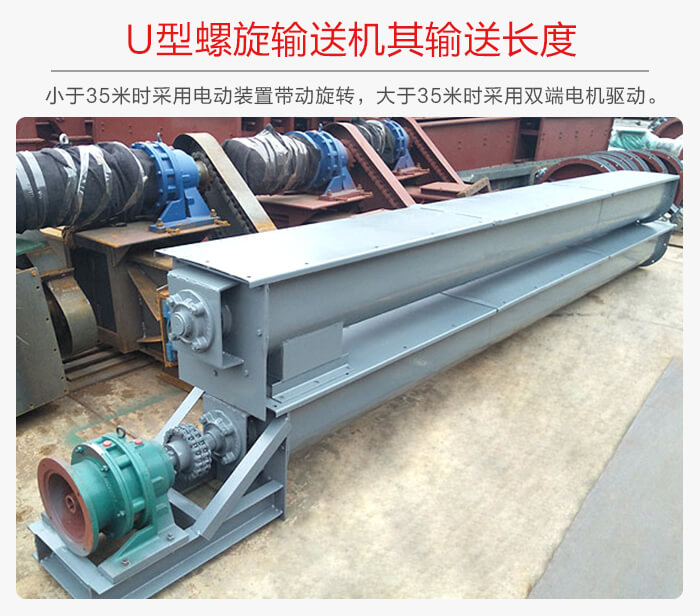 U型香蕉视频下载地址链接的输送长的有两种,其一:壳体长度小于35m的其螺旋轴是采用一端单电动装置带动主轴的旋转,而当其长度大于35m时就可采用两端双电动装置带动主轴旋转。