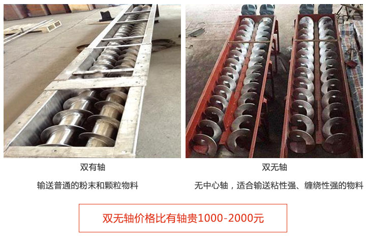 注:双无轴香蕉视频下载地址链接价格比有轴贵1000-2000元,因为采用无轴设计,可解决易缠绕物料的输送,且设计难度比有轴大。