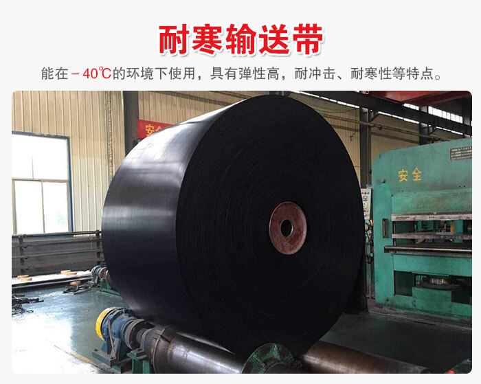 耐寒输送带选用的是棉帆布、尼龙帆布或聚脂帆布作带芯,覆盖胶采用橡胶与顺丁橡胶的并用胶,能在﹣40℃的环境下使用,具有弹性高,耐冲击、耐寒性等特点。