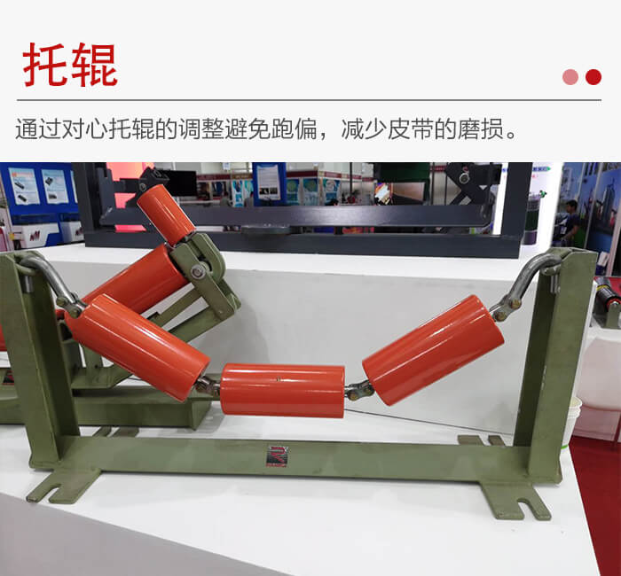 作用:①用户可以通过对心托辊的调整,来决定横向位置,避免物料在输送过程中跑偏,②缓冲托辊装在受料处,以减小物料对皮带的冲击,减少皮带的磨损。