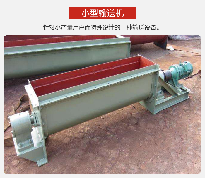 小型输送机是新乡香蕉视频污版免费下载公司为了针对小产量用户而特殊设计的一种输送设备,是按照JB/T679-95《香蕉视频下载地址链接》标准设计制造,是GX型香蕉视频下载地址链接的换代产品。该系列香蕉视频下载地址链接壳体采用U型,叶片螺距采用固定螺距,能够可靠的保证密封性能,由于其良好的密封性能,本设备多用于烘干机的进、出料,输送机在输送物料的同时,又可以防止冷空气进入干燥系统,输送更加高效。