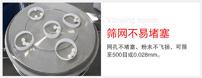 3、网孔不堵塞、粉末不飞扬、可筛至500目或0.028mm。